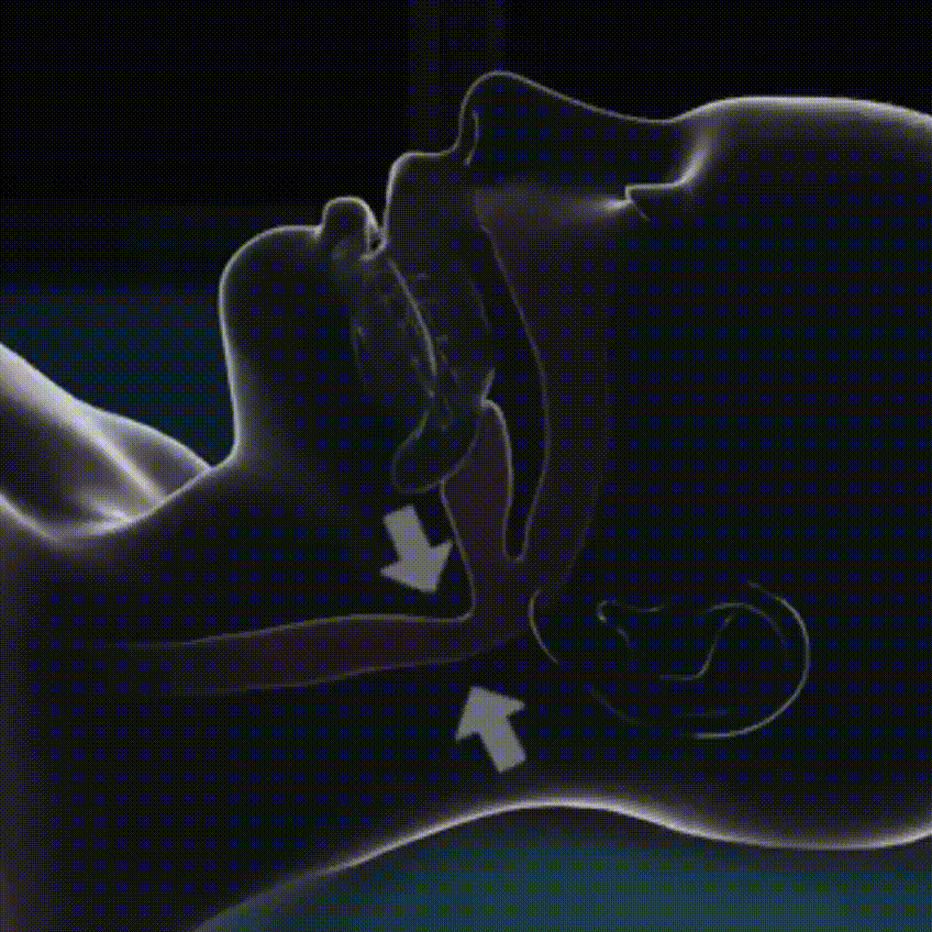 Cuando duermes, los músculos de la vía aérea superior y la garganta se relajan. La lengua puede caer hacia atrás, lo que hace que la vía aérea se estreche. VitalSleep mueve la mandíbula inferior y la lengua hacia adelante para mantener la vía aérea abierta. Su bandeja inferior es ajustable según la intensidad de tus ronquidos para mejorar la respiración y detener los ronquidos