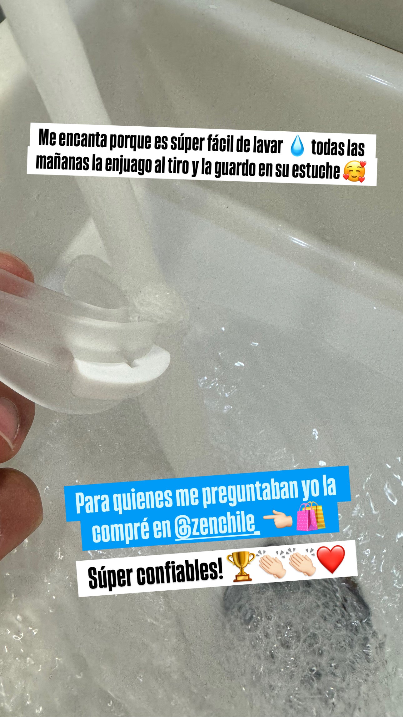 Simplemente limpie su boquilla con un cepillo de dientes y pasta de dientes o sumérjala en un enjuague bucal o limpiador de prótesis. Después de usar su boquilla o durante el viaje, puede guardarla en la funda protectora que se incluye convenientemente con cada boquilla Zen®.