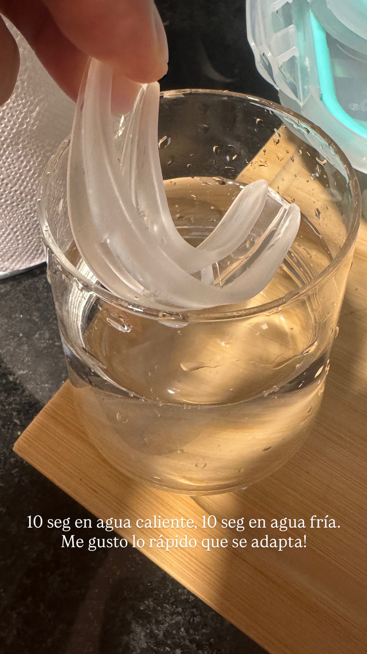 Caliéntalo en agua caliente durante 60 segundos. Enfríalo en agua fría durante 3 segundos. Muerde la pieza bucal para crear las impresiones personalizadas de tus dientes y mandibulas logrando un ajuste cómodo y personalizado.